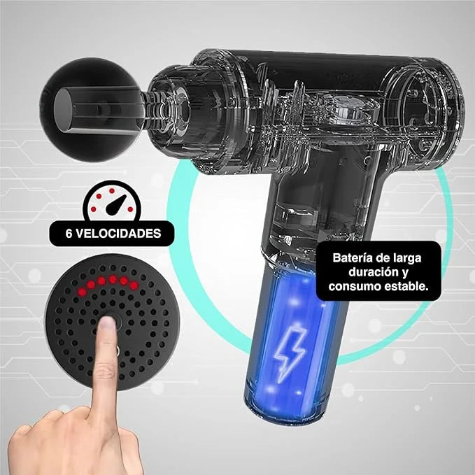 Pistola de masaje de percusión diseñada para favorecer la recuperación muscular y mejorar la amplitud de movimiento. Su tecnología avanzada proporciona un masaje profundo y eficaz en tejidos musculares sobrecargados, ayudando a reducir molestias tras la actividad física. Desarrollado con la asesoría de especialistas en deporte y salud, integra innovaciones que elevan la eficiencia y el confort de uso frente a modelos convencionales.